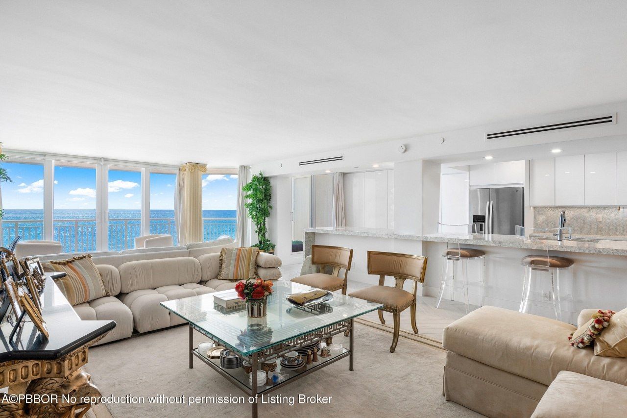 Enter into coastal modern luxury with this fully renovated 2,400sqft, 2-bedroom, 2.5-bathroom oceanfront residence at the exclusive 3600 S Ocean. Accessible via a private elevator entrance, this elegantly designed condo boasts breathtaking direct ocean views to the east and serene sunset vistas to the west from its ultra-large private balconies. The open-concept kitchen w/ ultra-long island and great room are an entertainer's dream, featuring detailed quartz countertops, high-end appliances, a w...Enter into coastal modern luxury with this fully renovated 2,400sqft, 2-bedroom, 2.5-bathroom oceanfront residence at the exclusive 3600 S Ocean. Accessible via a private elevator entrance, this elegantly designed condo boasts breathtaking direct ocean views to the east and serene sunset vistas to the west from its ultra-large private balconies. The open-concept kitchen w/ ultra-long island and great room are an entertainer's dream, featuring detailed quartz countertops, high-end appliances, a wet bar, and a wine fridge. The residence showcases chevron wood tile flooring throughout, impact glass windows, fitted walk-in closets, and spa-inspired bathrooms. Additional conveniences include an in-unit washer/dryer and two covered parking spaces. Enjoy resort-style living with an oceanfront... pool, fitness center, and private beach access in this boutique building. Located moments from Eau Palm Beach, the Four Seasons, premier shopping, and dining, with easy access to PBI Airport and Downtown West Palm Beach. Luxury coastal living at its finest.