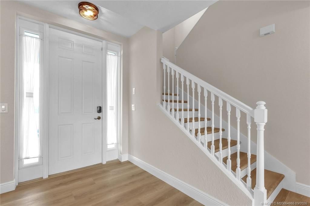 Embrace the coastal lifestyle in this beautifully updated townhome just steps from downtown Jensen Beach. The interior has been freshly painted and features new luxury vinyl flooring, crown molding in the kitchen, a designer backsplash, and an elegant electric fireplace. The open layout offers one bedroom and full bath on the main level, with two ensuite bedrooms upstairs. Enjoy reserved parking, impact windows, and a covered patio with pool views. Walk to vibrant shops, dining, and markets, or ...Embrace the coastal lifestyle in this beautifully updated townhome just steps from downtown Jensen Beach. The interior has been freshly painted and features new luxury vinyl flooring, crown molding in the kitchen, a designer backsplash, and an elegant electric fireplace. The open layout offers one bedroom and full bath on the main level, with two ensuite bedrooms upstairs. Enjoy reserved parking, impact windows, and a covered patio with pool views. Walk to vibrant shops, dining, and markets, or cross the Jensen Causeway to the public beach. The Indian River Lagoon is right across the street, offering endless opportunities for outdoor enjoyment. Move-in ready and waiting for you!